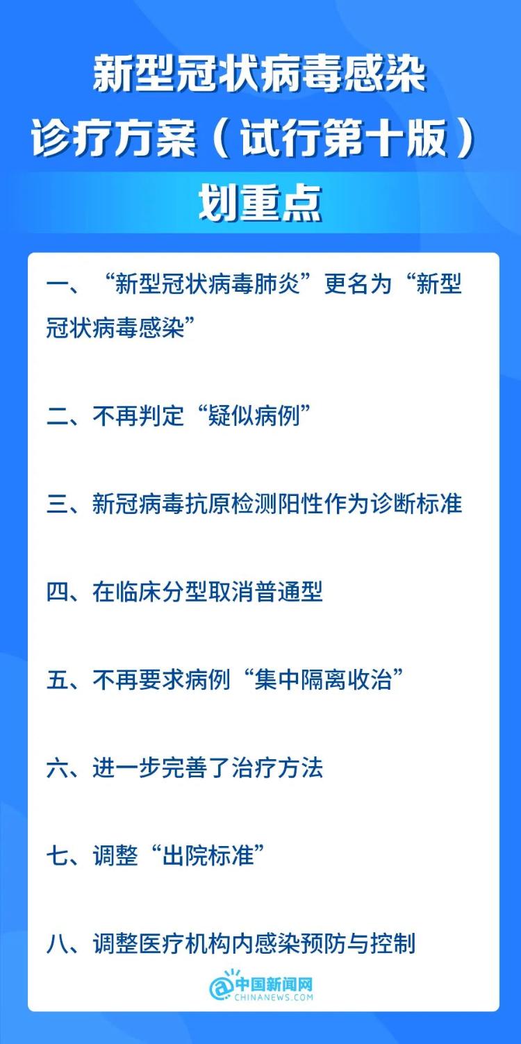 据国家卫健委网站消息第一证券,1月6日,《新型冠状病毒感染诊疗方案(试行第十版)》印发,重要调整如下: