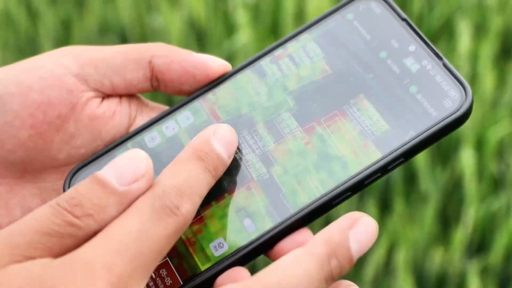 农户通过AI智慧农业数字管理平台管理麦田。新华社记者 张硕 摄