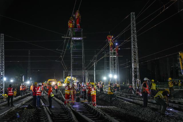 19日晚,率先施工的南侧站场完成建设,向北侧站场倒边,进入交替施工中最后关键一环。当晚9时20分启动作业,施工区域分别位于西环线安靖端、成都站西咽喉、成都站东咽喉、成渝线取直段等4个作业点,由中铁八局、中铁电气化局、成都工务段、成都电务段、成都供电段等10余家单位相互配合,同步完成涉及成灌联络线、成灌单线、成安联络线、宝成单线等多条线路及附属设施的拆除,并插铺道岔、拨接线路等设施,于20日早晨6时,完成全部迁移工作。