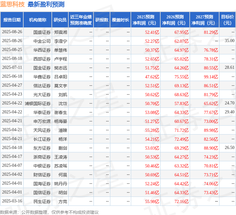 最新盈利预测明细如下: